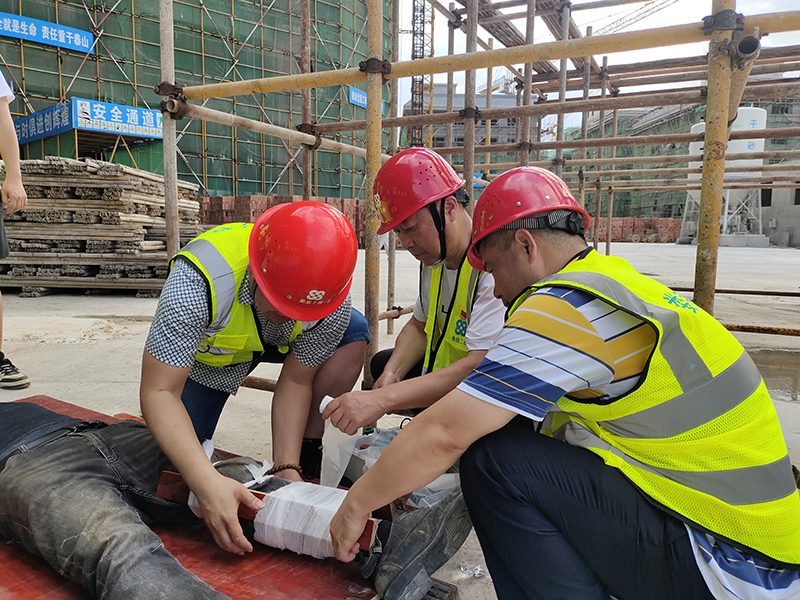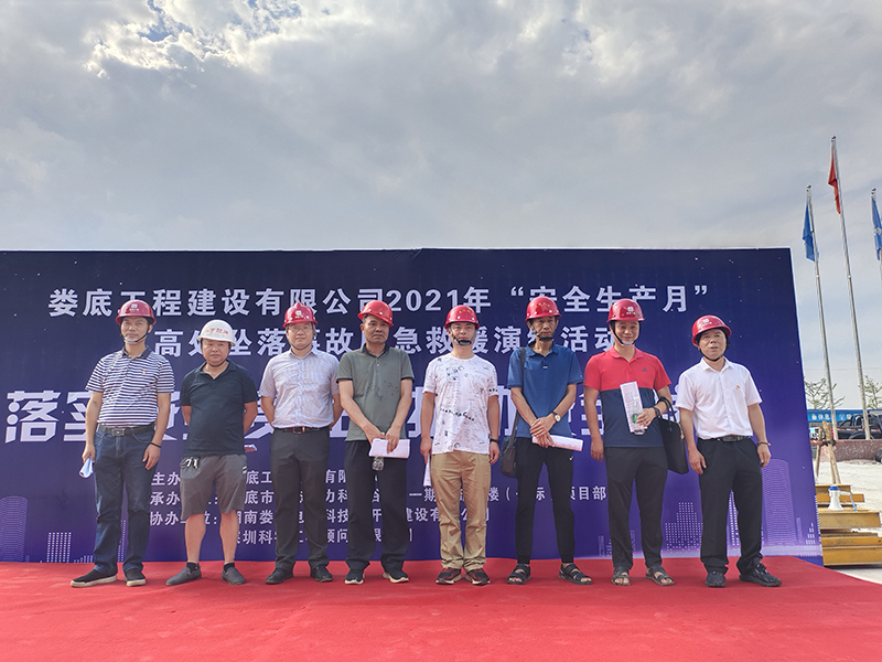 為進一步提高公司安全管理水平,規(guī)范公司安全生產(chǎn)過程的管理工作,本著"安全第一、預(yù)防為主、綜合治理"的安全管理方針。 加強建筑工地應(yīng)對突發(fā)事件的處理能力,提高全員安全意識,切實掌握應(yīng)急救援的的技能、技巧,讓員工在事故發(fā)生時將傷害減少到最低,同時為響應(yīng)“學(xué)黨史,辦實事”的精神,公司和公司黨支部特組織了一次高處墜落事故應(yīng)急救援演練活動。婁底經(jīng)開區(qū)住建局童韜先生、李愛民先生、李俊先生、雷海仁先生,建設(shè)單位現(xiàn)場負責(zé)人曾彪先生,監(jiān)理單位總監(jiān)柯又華先生,婁底工程建設(shè)有限公司副總經(jīng)理彭洪偉、顏克靈出席了本次演練活動,婁底市生態(tài)電力科技谷A區(qū)一期一標項目部全體人員,公司各在建項目負責(zé)人、關(guān)鍵崗位人員參加了此次演練活動。
