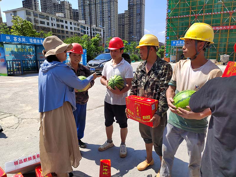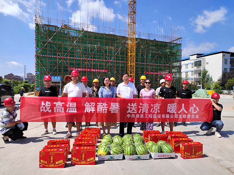 活動(dòng)中,公司黨支部帶領(lǐng)項(xiàng)目部黨小組成員及工程部同事與施工人員親切交談,詳細(xì)了解他們的生產(chǎn)生活、防暑降溫情況,并送去了西瓜、涼茶等防暑降溫物資。支部書記何林叮囑項(xiàng)目部管理人員要及時(shí)掌握高溫天氣信息,合理安排現(xiàn)場(chǎng)作業(yè)時(shí)間,預(yù)防高溫中暑,并勉勵(lì)他們?cè)诮窈蟮墓ぷ髦校^續(xù)發(fā)揚(yáng)吃苦耐勞、樂于奉獻(xiàn)的精神。
