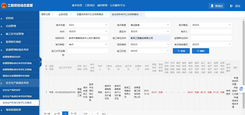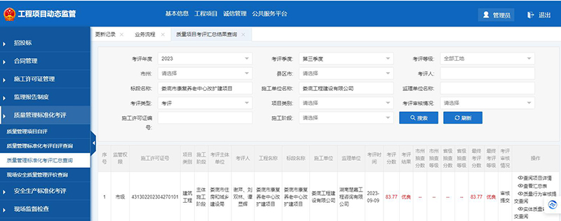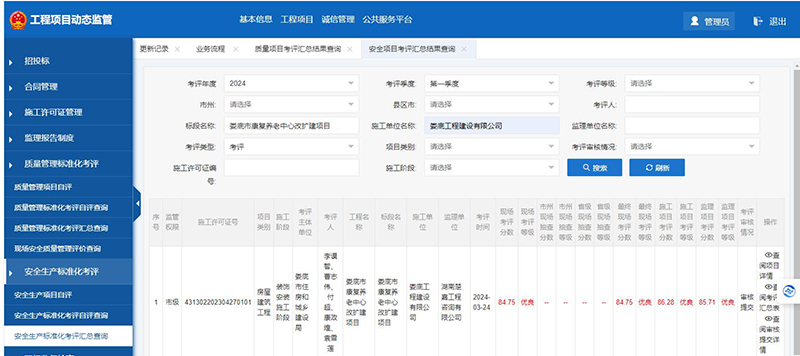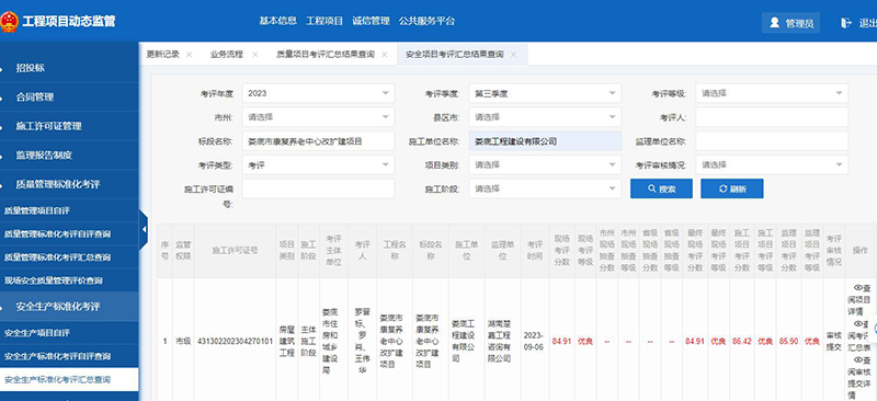 該項(xiàng)目在2023年度安全生產(chǎn)標(biāo)準(zhǔn)化季度考評(píng)和質(zhì)量管理標(biāo)準(zhǔn)化季度考評(píng)中獲得了較好成績(jī)。質(zhì)量管理標(biāo)準(zhǔn)化季度考評(píng)第二、三季度被評(píng)為優(yōu)良;安全生產(chǎn)標(biāo)準(zhǔn)化季度考評(píng)第三、四季度被評(píng)為優(yōu)良。