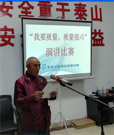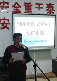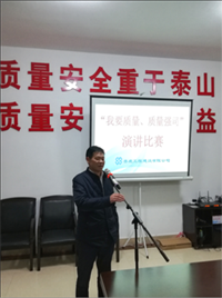 2017年11月17日晚,公司在機(jī)關(guān)辦公室大會(huì)議室舉辦了一場(chǎng)別開(kāi)生面的“我要質(zhì)量,質(zhì)量強(qiáng)司”演講比賽。共有16位項(xiàng)目經(jīng)理上臺(tái)發(fā)表了主題演講。經(jīng)過(guò)評(píng)委現(xiàn)場(chǎng)打分評(píng)定,來(lái)自百弘學(xué)府城的項(xiàng)目經(jīng)理李朝陽(yáng)榮獲一等獎(jiǎng);公司江龍灘基地項(xiàng)目經(jīng)理李紅暉、雙峰三塘鋪獨(dú)立工礦區(qū)現(xiàn)代產(chǎn)業(yè)園蜉化器項(xiàng)目項(xiàng)目經(jīng)理謝晃分獲二等獎(jiǎng)。