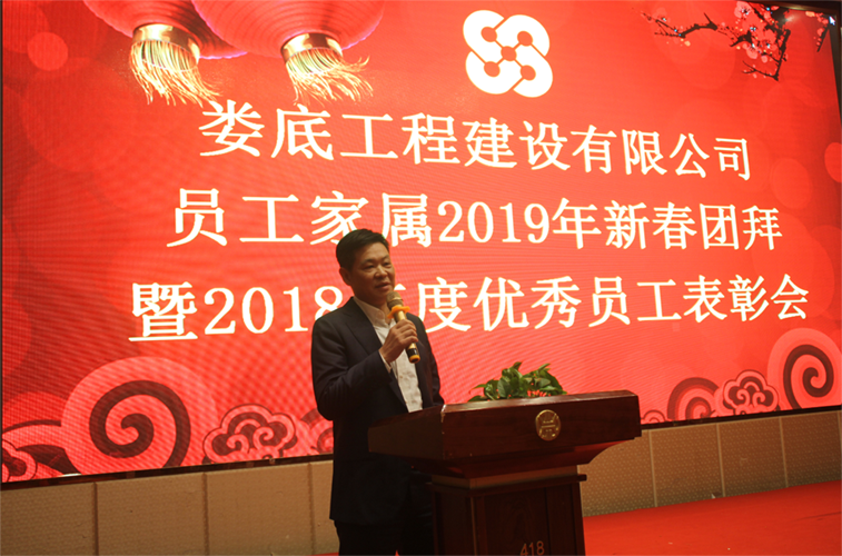 2019年2月13日,農(nóng)歷正月初九,婁底工程建設(shè)有限公司2019年新春團(tuán)拜暨2018年優(yōu)秀員工表彰會(huì)在婁底418華天大酒店泰山廳隆重舉行。來(lái)自全司各施工項(xiàng)目部、各所屬單位、機(jī)關(guān)部室、湘中礦業(yè)集團(tuán)婁底本部的員工及員工家屬共260余人參加了新春團(tuán)拜及優(yōu)秀員工表彰活動(dòng)。公司董事長(zhǎng)張愛(ài)慧先生、總經(jīng)理胡勁先生分別致辭,湘中礦業(yè)集團(tuán)總裁助理、法人代表聶武湘先生、戰(zhàn)略顧問(wèn)袁明毓先生參加了團(tuán)拜會(huì)并給優(yōu)秀員工頒獎(jiǎng)。表彰會(huì)后,公司全體員工合影留念并高唱《團(tuán)結(jié)就是力量》。會(huì)上還舉行了幸運(yùn)大抽獎(jiǎng)、歡樂(lè)運(yùn)輸、舞蹈表演、詩(shī)歌朗誦等豐富多彩的文體活動(dòng)。