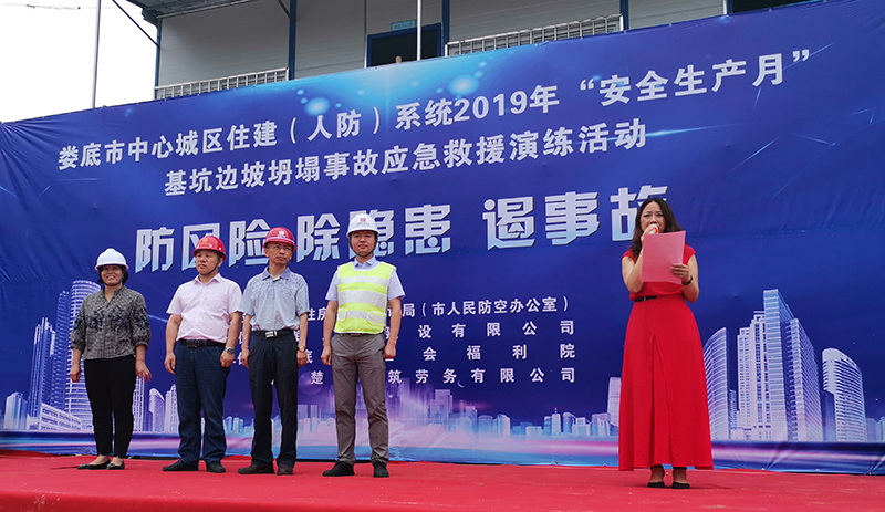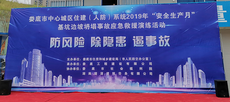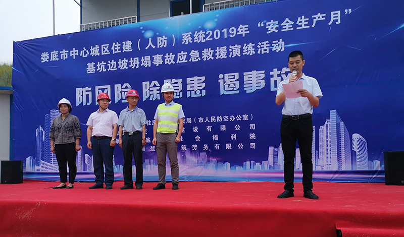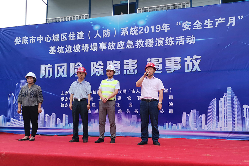 為深入貫徹黨的十九大和十九屆二中、三中全會(huì)精神,認(rèn)真學(xué)習(xí)貫徹習(xí)近平總書記關(guān)于安全生產(chǎn)的重要論述,為新中國成立70周年?duì)I造良好的安全生產(chǎn)環(huán)境,積極響應(yīng)省、市關(guān)于2019年“安全生產(chǎn)月”活動(dòng)的有關(guān)文件要求,加強(qiáng)建筑工地應(yīng)對(duì)突發(fā)事件的處理能力,提高全員安全意識(shí),切實(shí)掌握應(yīng)急救援的技能、技巧,讓員工在事故發(fā)生時(shí)將傷害減少到最低。我司特承辦了由婁底市住房和城鄉(xiāng)建設(shè)局(人民防空辦公室)主辦的2019年“安全生產(chǎn)月”“防風(fēng)險(xiǎn)、除隱患、遏事故"建筑施工基坑坍塌事故應(yīng)急救援演練活動(dòng)。