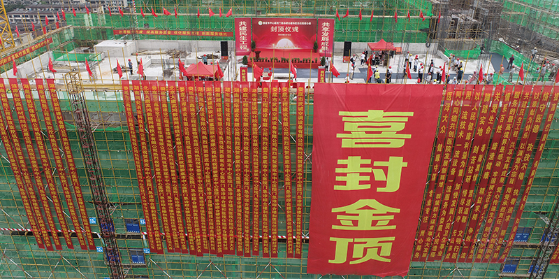 大樓的封頂標志著項目建設邁上新臺階,也為喜迎黨的二十大勝利召開獻上了一份特殊的禮物。