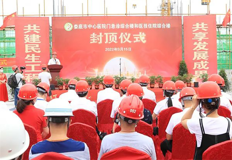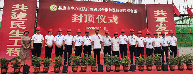 9月15日上午,我司承建的市重點民生工程——婁底市中心醫(yī)院門急診綜合樓和醫(yī)技住院綜合樓順利封頂。市人大常委會副主任羅孝貴出席儀式并宣布封頂。
