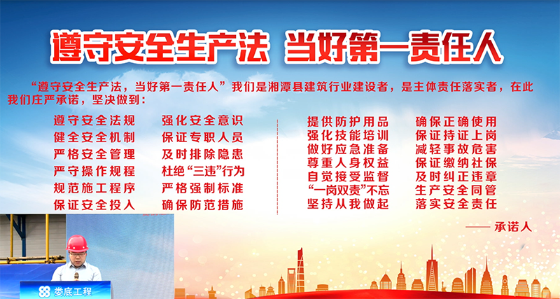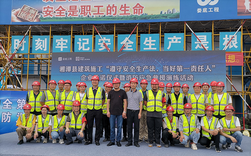 為了進(jìn)一步加強(qiáng)安全生產(chǎn)工作,認(rèn)真落實(shí)2022年安全生產(chǎn)月活動(dòng)文件要求“遵守安全生產(chǎn)法,當(dāng)好第一責(zé)任人”有效防范事故的發(fā)生,為進(jìn)一步提高公司安全管理水平,規(guī)范公司安全生產(chǎn)過(guò)程的管理工作,為加強(qiáng)和促進(jìn)應(yīng)急管理工作,全面貫徹“安全第一,預(yù)防為主,防消結(jié)合”的消防工作方針,2022年6月23日9:00,湘潭縣住房和城鄉(xiāng)建設(shè)局在我司承建的湘潭江聲壹號(hào)一期項(xiàng)目開(kāi)展了湘潭縣建筑施工“遵守安全生產(chǎn)法,當(dāng)好第一責(zé)任人”企業(yè)承諾儀式暨消防應(yīng)急救援演練活動(dòng)。出市本次活動(dòng)的的嘉賓有:湘潭縣人民政府副縣長(zhǎng)肖睿,湘潭縣政府辦副主任言志強(qiáng),湘潭縣住建局黨委書(shū)記局長(zhǎng)吳能,湘潭縣應(yīng)急管理局黨委書(shū)記局長(zhǎng):劉江華,德智置業(yè)公司總經(jīng)理:龔永兵,婁底工程建設(shè)有限公司副總經(jīng)理顏克靈,中國(guó)人民財(cái)產(chǎn)保險(xiǎn)股份有限公司湘潭支公司經(jīng)理朱星海。