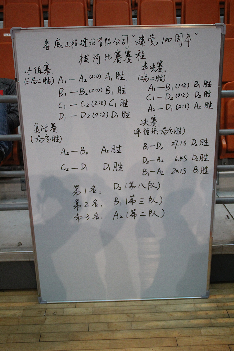 本次比賽根據(jù)隨機抽簽組隊,以“12人對12人拔河”,此次賽制分為淘汰賽、復(fù)活賽、半決賽、決賽四個階段。在比賽過程中,各隊人員都顯示出最強的比賽陣容,齊心協(xié)力,勇爭第一!為保證比賽的公平、公正、公開,賽會特設(shè)裁判1名,記錄員1名,維持秩序人員4名,另外還有現(xiàn)場攝影者1名。